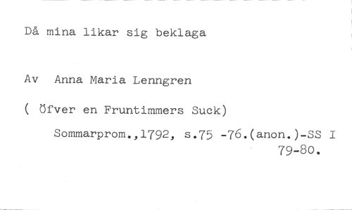Då mina likar sig beklaga //// Av Anna Maria Lenngren //// ( öfver en Fruntimmers Suck) //// Sommarprom.,1792, s.75 -76.(anon.)-SS I //// 79-80.