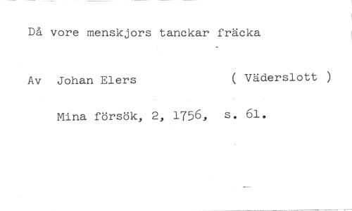 Då vore menskjors tanckar fräcka //// Av Johan Elers ( Väderslott ) //// Mina försök, 2, 1756, s. 61.