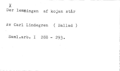 Ä //// Der leraningen af kojan står //// Av Carl Lindegren ( Ballad ) //// Saml.arb. I 288 - 293.