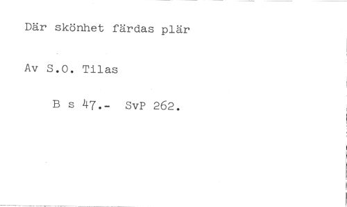 Där skönhet färdas plär //// Av S.O. Tilas //// B s 47.- SvP 262.