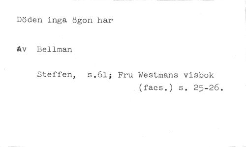 Döden inga ögon har Av Bellman //// Steffen, s.61; Fru Westmans visbok //// (facs.) s. 25-26.