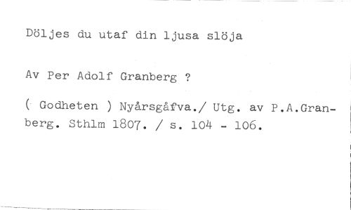 Döljes du utaf din ljusa slöja Av Per Adolf Granberg ? //// ( Godheten ) Nyårsgåfva./ Utg. av P.A.Granberg. Sthlm 1807. / s. 104 - 106.