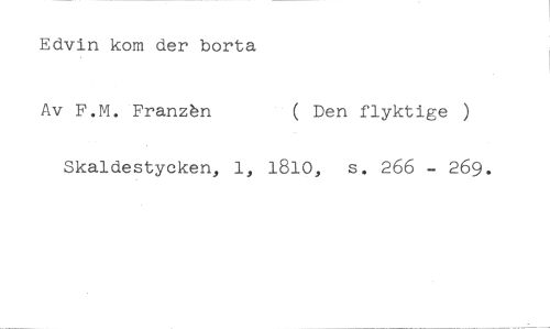 Edvin kom der borta //// Av F.M. Franzén ( Den flyktige ) //// Skaldestycken, 1, 1810, s. 266 - 269.