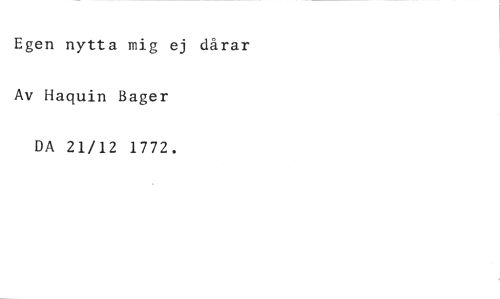 Egen nytta mig ej dårar Av Haquin Bager DA 21/12 1772.