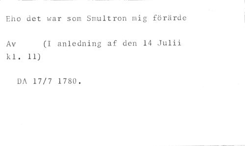 Eho det war som Smultron mig förärde //// Av (I anledning af den 14 Julii //// kl. 11) //// DA 17/7 1780.