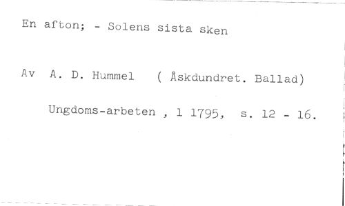 En afton; - Solens sista sken //// Av A. D. Hummel ( Åskdundret. Ballad) //// Ungdoms-arbeten , 1 1795, s. 12 - 16.