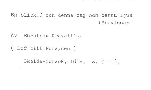 En blick : och denna dag och detta ljus //// försvinner //// Av Ehrnfred Gravallius ( Lof till Försynen ) //// Skalde-försök, 1812, s. y -16.