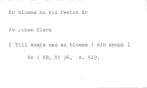 En blomma nu vid femton år Av Jöhan Elers //// ( Till Amata med en blomma i sin knopp ) Hs i KB, Vf 96, s. 419.
