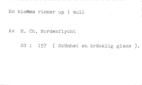 En blomma rinner up i mull //// Av H. Ch. Nordenflycht //// SS 1 157 ( Skönhet en bräcklig glans ).