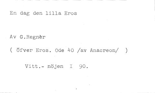 En dag den lilla Eros //// Av G.Regnår //// ( Öfver Eros. Ode 40 /av Anacreon/ ) //// Vitt.- nöjen I 90.