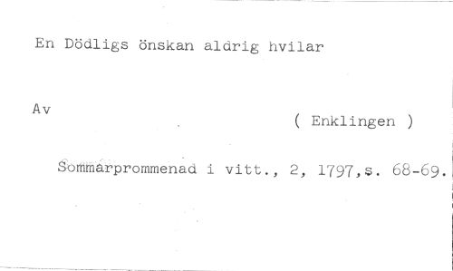 En Dödligs önskan aldrig hvilar //// Av ( Enklingen ) //// SornmarprommenSd i vitt., 2, 1797,s. 68-69.