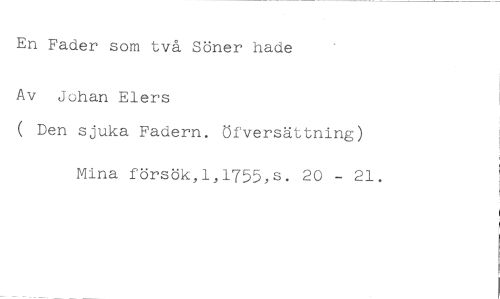 En Fader som två Söner hade //// Av Johan Elers //// ( Den sjuka Fadern. öfversättning) //// Mina försök,1,1755,s. 20 - 21.
