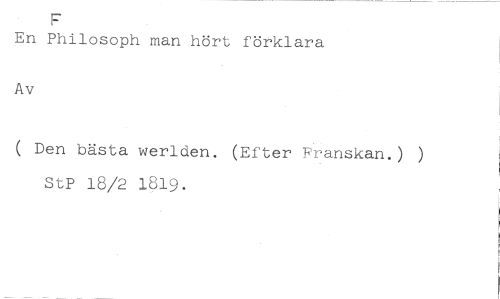 F //// En Philosoph man hört förklara //// Av //// ( Den bästa werlden. (Efter Franskan.) ) StP 18/2 1819.