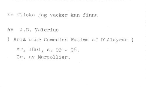 En flicka jag vacker kan finna //// Av J.D. Valerius //// ( Aria utur Comedien Fatima af D'Alayrac ) //// MT, 1801, s. 93 - 96. Or. av Marsollier.