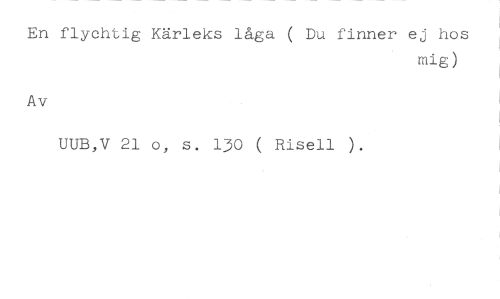 En flychtig Kärleks låga ( Du finner ej hos //// mig) //// Av //// UUB,V 21 o, s. 130 ( Risell ).