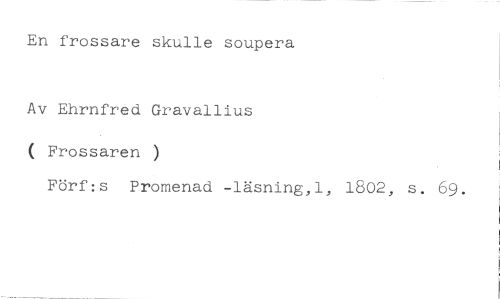 En frossare skulle soupera //// Av Ehrnfred Gravallius //// ( Frossaren ) //// Förf:s Promenad -läsning,l, 1802, s. 69.