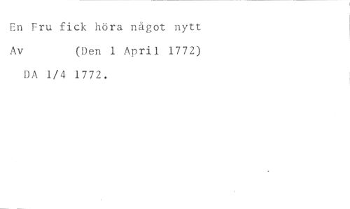 En Fru fick höra något nytt //// Av (Den 1 April 1772) //// DA 1/4 1772.