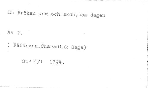 En Fröken ung och skön,som dagen //// Av ?. //// ( Fåfängan.Charadisk Saga) //// StP 4/1 1794.