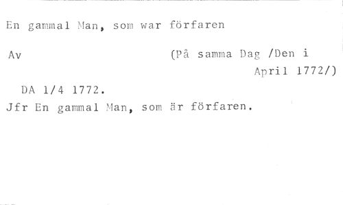 En gammal Man, som war förfaren //// Av (På samma Dag /Den i //// April 1772/) //// DA 1/4 1772. //// Jfr En gammal Man, som är förfaren.