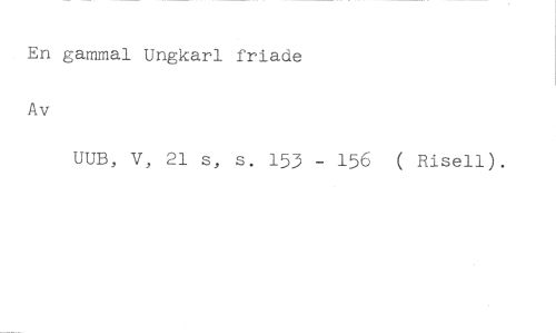 En gammal Ungkarl friade Av //// UUB, V, 21 s, s. 153 - 156 ( Risell).