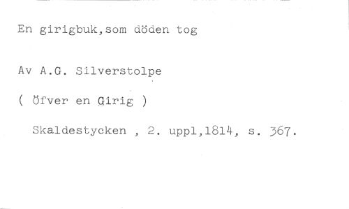 En girigbuk,som döden tog //// Av A.G. Silverstolpe ( öfver en Qirig ) //// Skaldestycken , 2. upp1,1814, s. 367.