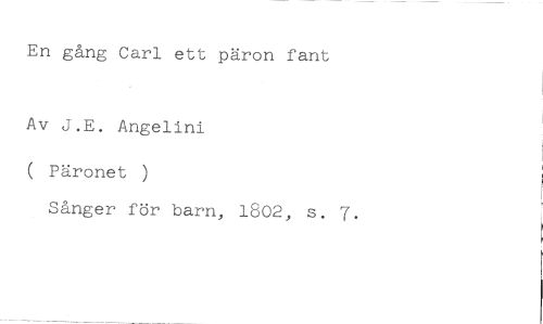 En gång Carl ett päron fant //// Av J.E. Angelini //// ( Päronet ) //// Sånger för barn, 1802, s. 7.