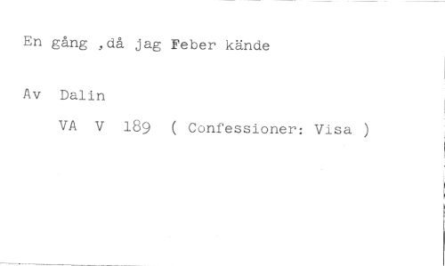 En gång ,då jag Feber kände //// Av Dalin //// VA V 189 ( Confessioner: Visa )