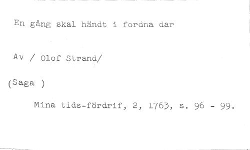 En gång skal händt i fordna dar //// / Olof Strand //// /(Saga ) //// Mina tids-fördrif, 2, 1763, s. 96 - 99.