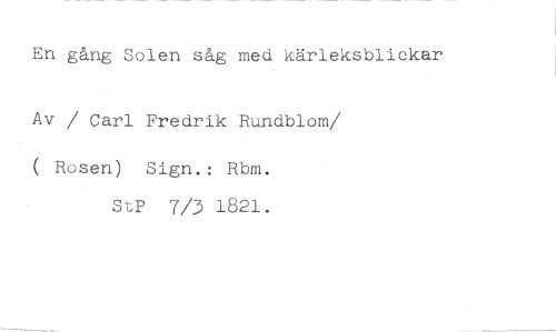 En gång Solen såg med kärleksblickar Av / Carl Fredrik Rundblom //// /( Rosen) Sign.: Rbm. stP 7/3 1821.