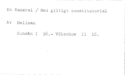 En Kameral / Med giltigt constitutorial Av Bellman //// Sondbn 1 98.- Völschow II 16.