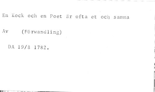 En Kock och en Poet är ofta et och samma //// Av (Förwandling) //// DA 19/8 1782. //// DM—E— n n1, —1---rr