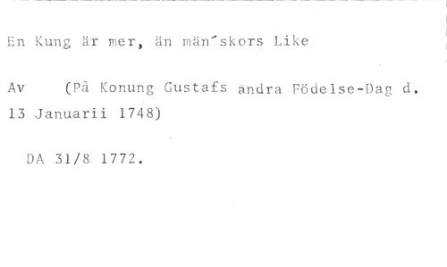 En Kung är mer, än män'skors Like //// Av (På Konung Gustafs andra Födelse-Dag d. //// 13 Januarii 1748) //// DA 31/8 1772.