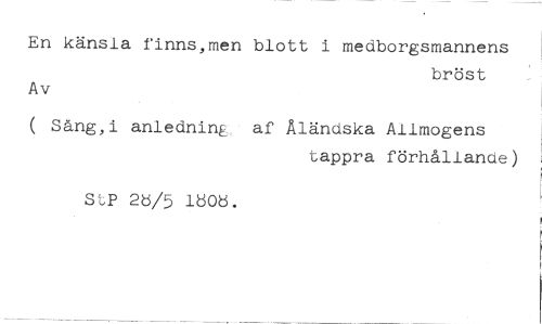 En känsla finns,men blott i medborgsmannens //// bröst //// Av //// ( Säng,i anledninE af Åländska Allmogens //// tappra förhållande) //// StP 2b/5 1b0b.