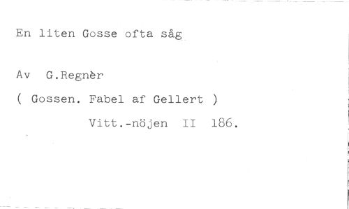 En liten Gosse ofta såg //// Av G.Regnår //// ( Gossen. Fabel af Gellert ) Vitt.-nöjen II 186.