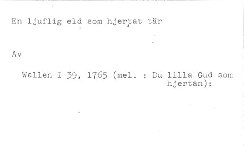 En ljuflig eld som hjerat tär //// Av //// Wallen 1 39, 1765 (mel. : Du lilla Gud som //// hjertan):