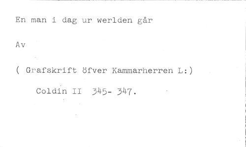 En man i dag ur werlden går Av //// ( Grafskrift öfver Kammarherren L:) Coldin II 345- 347.