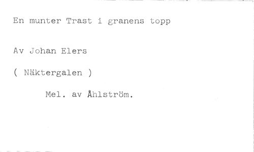 En munter Trast i granens topp //// Av Johan Elers ( Näktergalen ) //// Mel. av Åhlström.