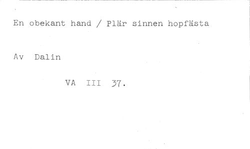 En obekant hand / Plär sinnen hopfästa //// Av Dalin //// VA III 37.