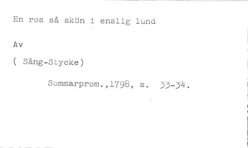 En ros så skön i enslig lund //// Av //// ( Sång-Stycke) //// Sommarprom.,1798, s. 33-34.