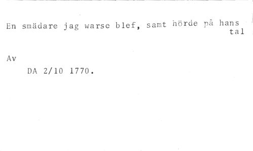 En smädare jag warse blef, samt hörde på hans //// tal //// Av //// DA 2/10 1770.