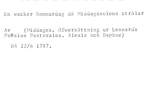 En wacker Sommardag då Middagssolens strålar //// Av (Middagen. öfwersättning ur Leonards //// PoUsies Pastorales. Alexis och Daphne) //// DA 22/6 1787.