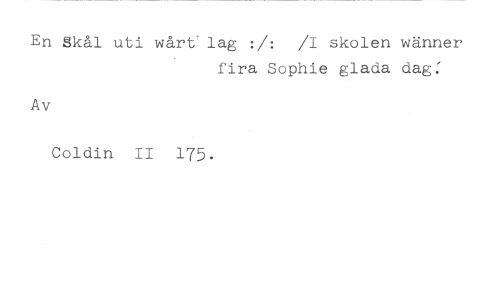 En Skål uti wårt. lag :/: /I skolen wänner //// fira Sophie glada dag: //// Av //// Coldin II 175.