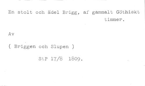 En stolt och ädel Brigg, af gammalt Göthiskt //// timmer. //// Av //// ( Briggen och Slupen //// StP 17/8 1809.