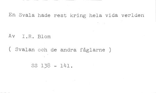 En Svala hade rest kring hela vida verlden //// Av I.R. Blom //// ( Svalan och de andra fåglarne ) //// SS 138 - 141.