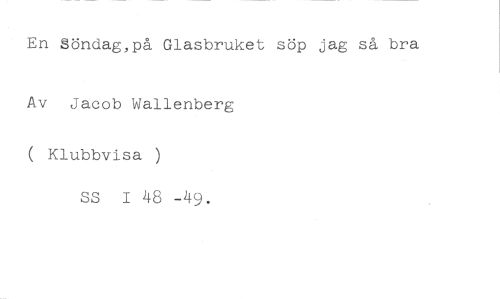 En Söndag,på Glasbruket söp jag så bra //// Av Jacob Wallenberg Klubbvisa ) //// ss 1 48 -49.