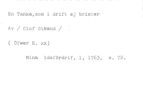 En Tanka,som i drift ej brister Av / Olof Stband / ( öfwer E. xx) //// Mina idsfördrif, 1763, s. 72.