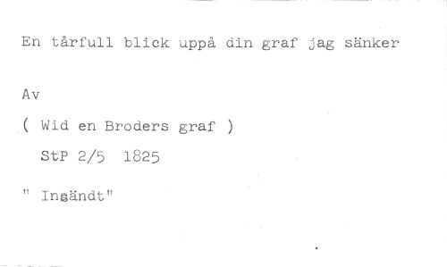En tårfull blick uppå din graf jag sänker //// Av //// ( Wid en Broders graf StP 2/5 1825 //// " Indändt"