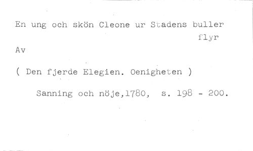 En ung och skön Cleone ur Stadens buller //// flyr //// Av //// ( Den fjerde Elegien. Oenigheten ) Sanning och nöje,1780, s. 198 - 200.