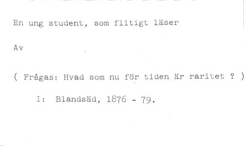 En ung student, som flitigt läser Av //// ( Frågas: Hvad som nu för tiden är raritet ? ) I: Blandsäd, 1876 - 79. •