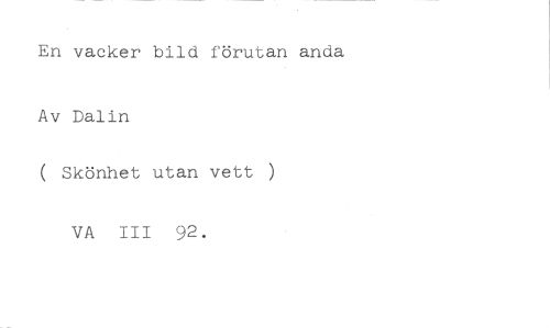 En vacker bild förutan anda //// Av Dalin //// ( Skönhet utan vett ) //// VA III 92.